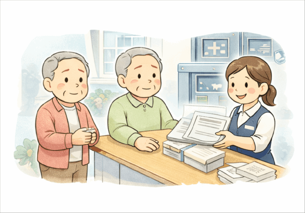 - 入院時入院手続き、医療費支払い など